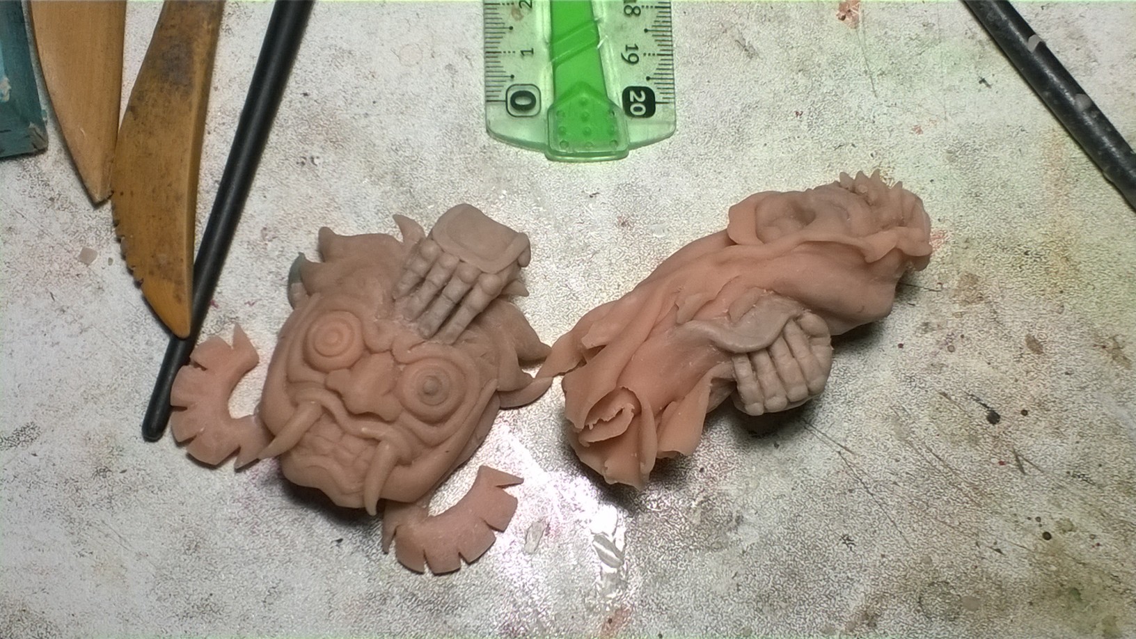 Le visage n'est pas terminé à cette étape car il doit rester modifiable avant son insertion sur le corps. Il peut y avoir des retouches à faire.